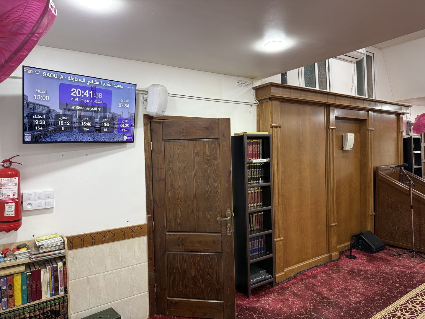 بين الأذان والإقامة ، وبعد كل صلاة ، يتم عرض الأذكار والأدعية. كما يعرض حديث للنبي "صلى الله عليه وسلم" كل 5 دقائق