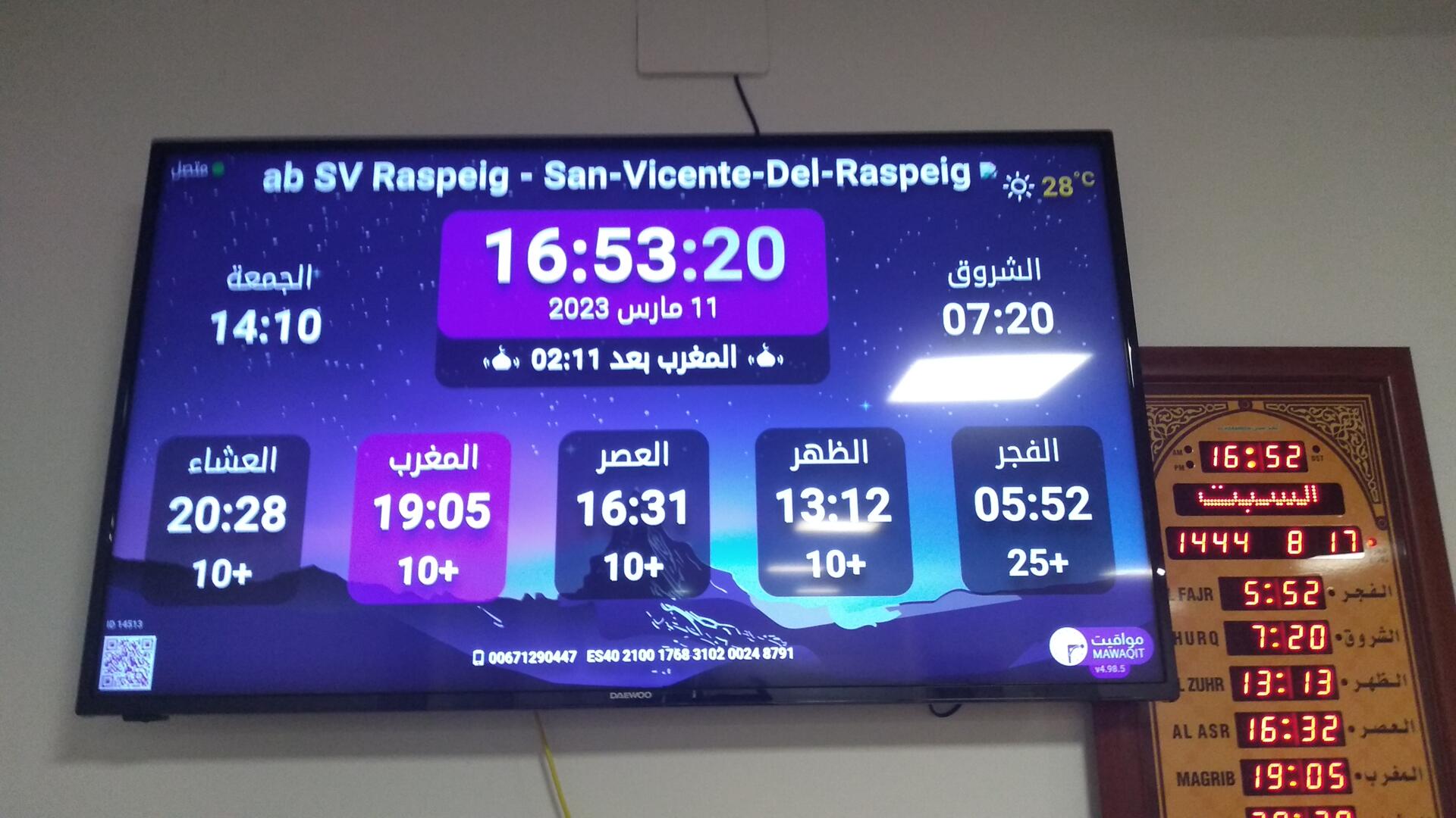 Zwischen dem Athan und der Iqama sowie nach jedem Gebet werden Erinnerungen und Aufforderungen angezeigt. Ein Hadith des Propheten "Allahs Gebet und Heil seien auf ihm" wird ebenfalls alle 5 Minuten angezeigt