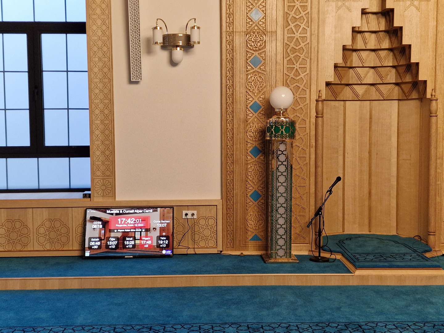 Multiple options, such as turning off the screen during prayer and the jumua sermon