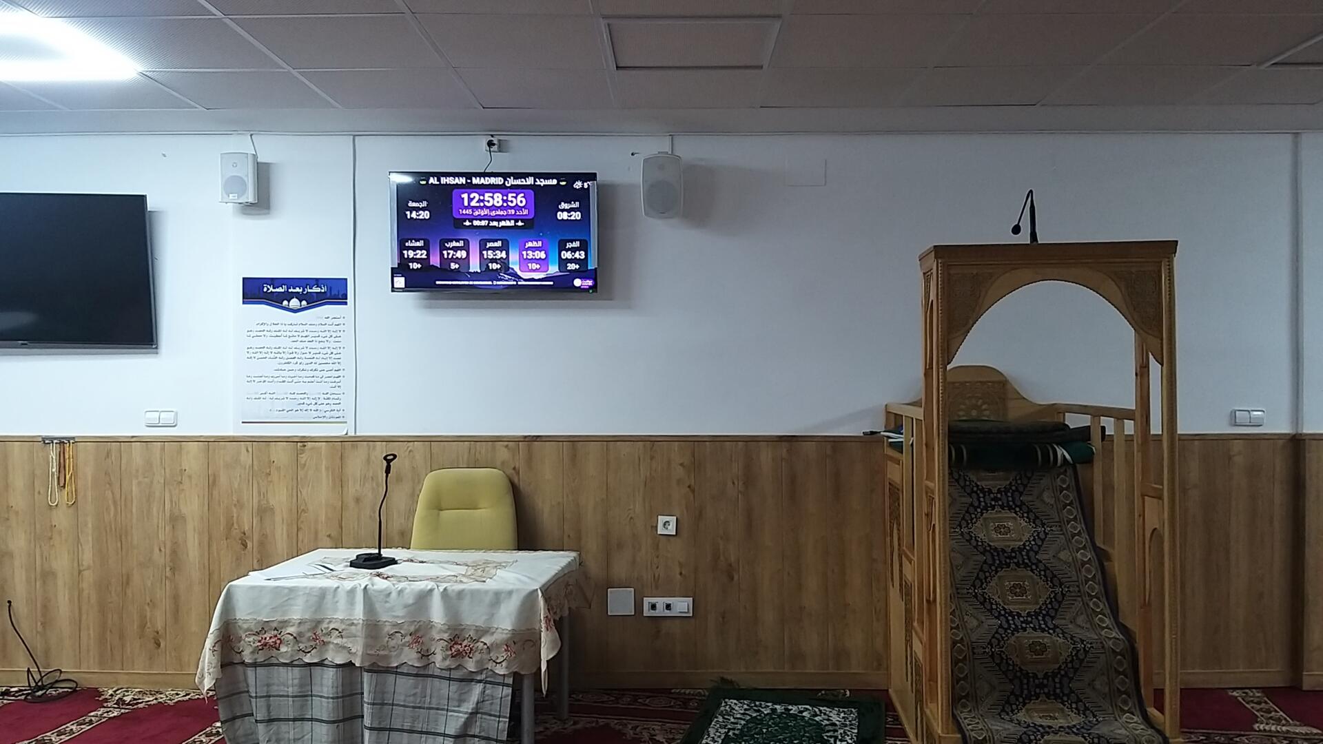Between the athan and the iqama, and after each prayer, reminders and invocations are displayed. A Prophet's Hadith "May Allah's Prayer and Salvation Be to Him" is also displayed every 5 min