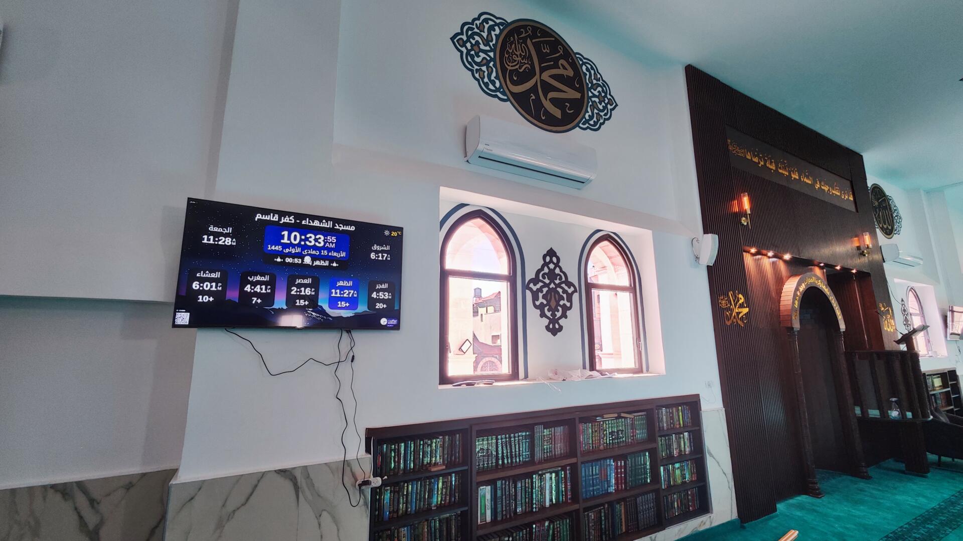 Between the athan and the iqama, and after each prayer, reminders and invocations are displayed. A Prophet's Hadith "May Allah's Prayer and Salvation Be to Him" is also displayed every 5 min