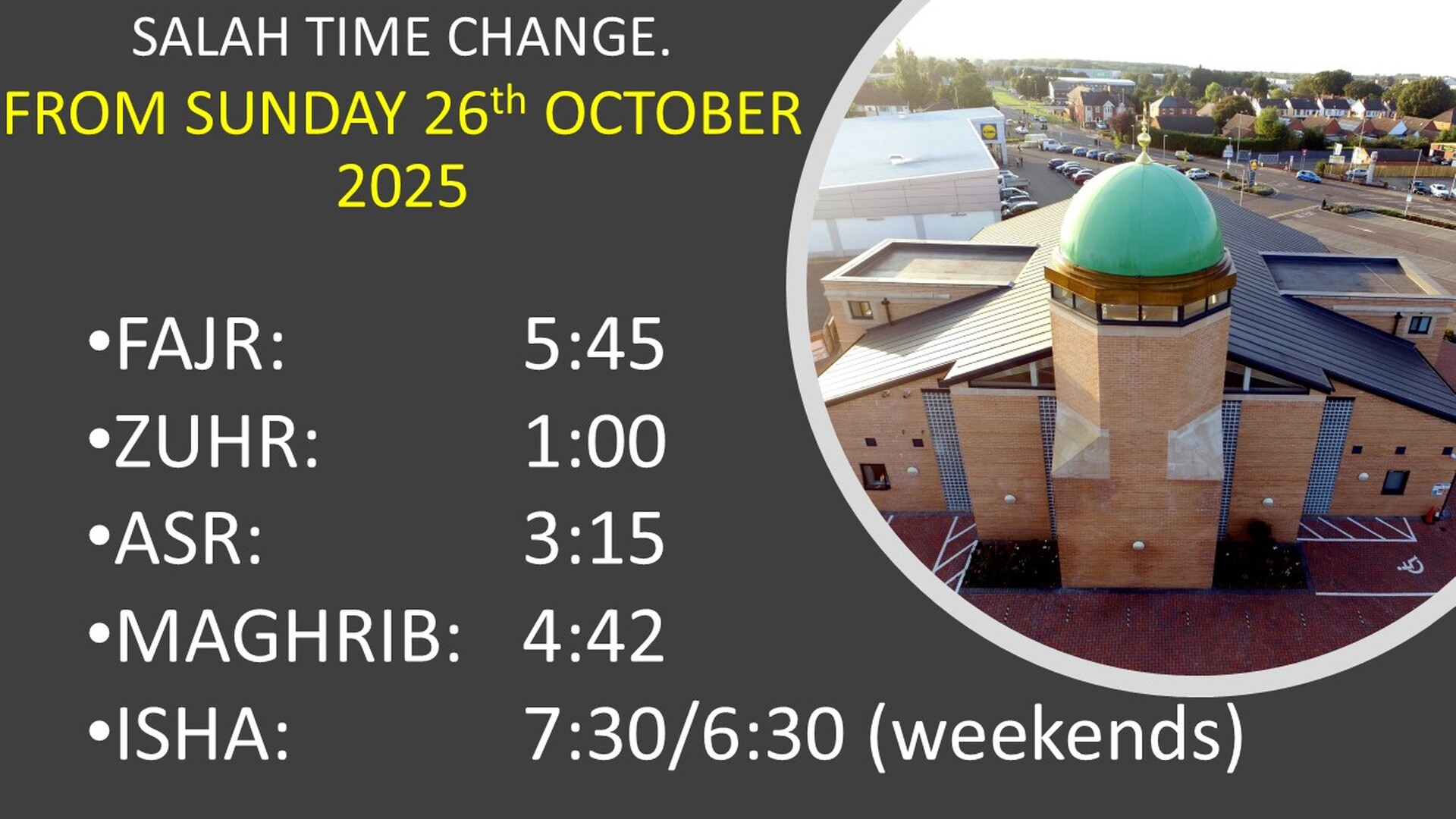 Salah Time Change from 27/10/25