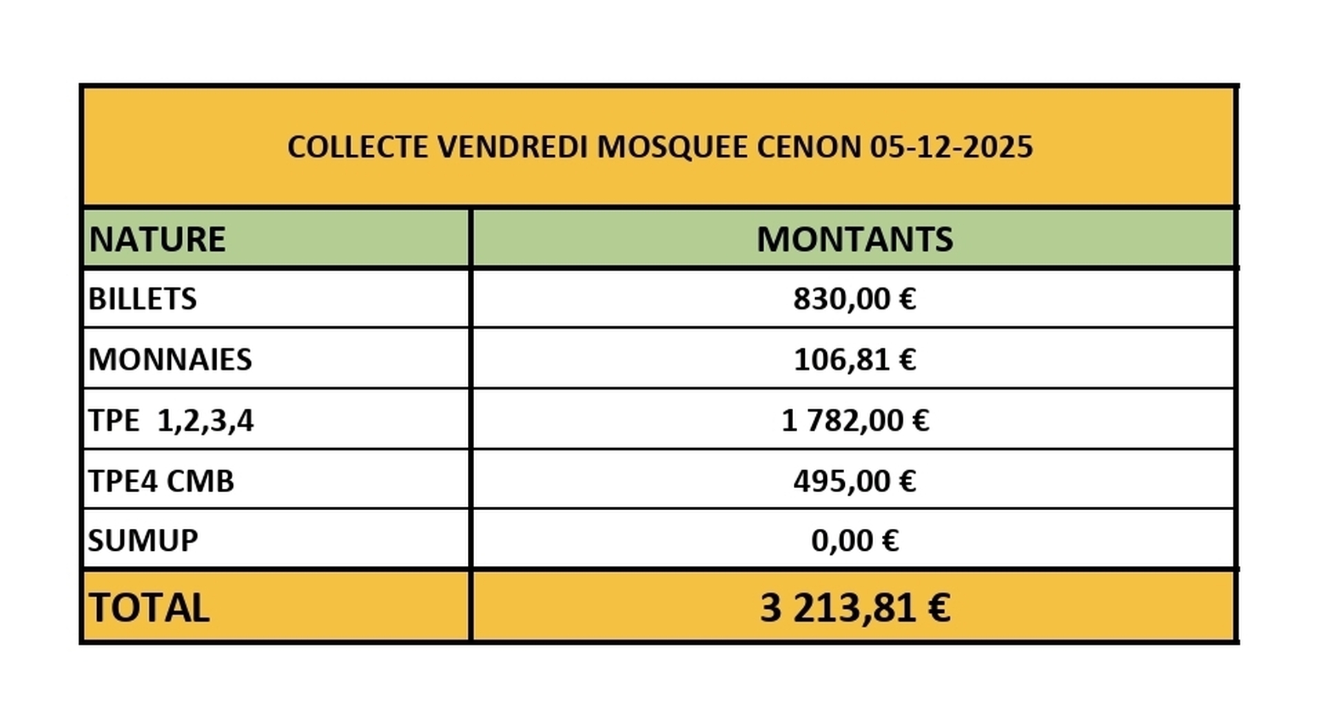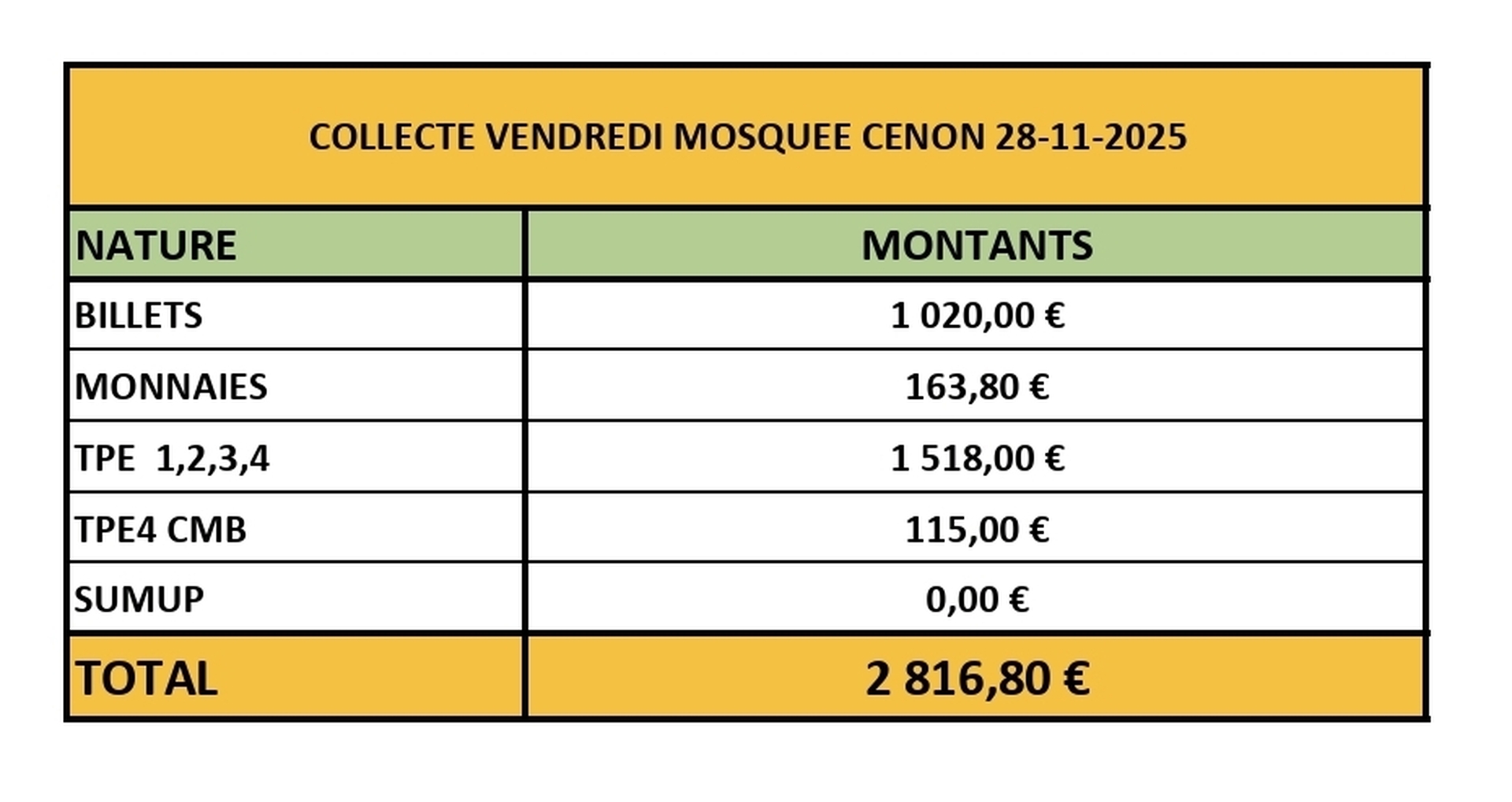 Ouverture 30 minute avant les prières et fermeture 20 minutes après