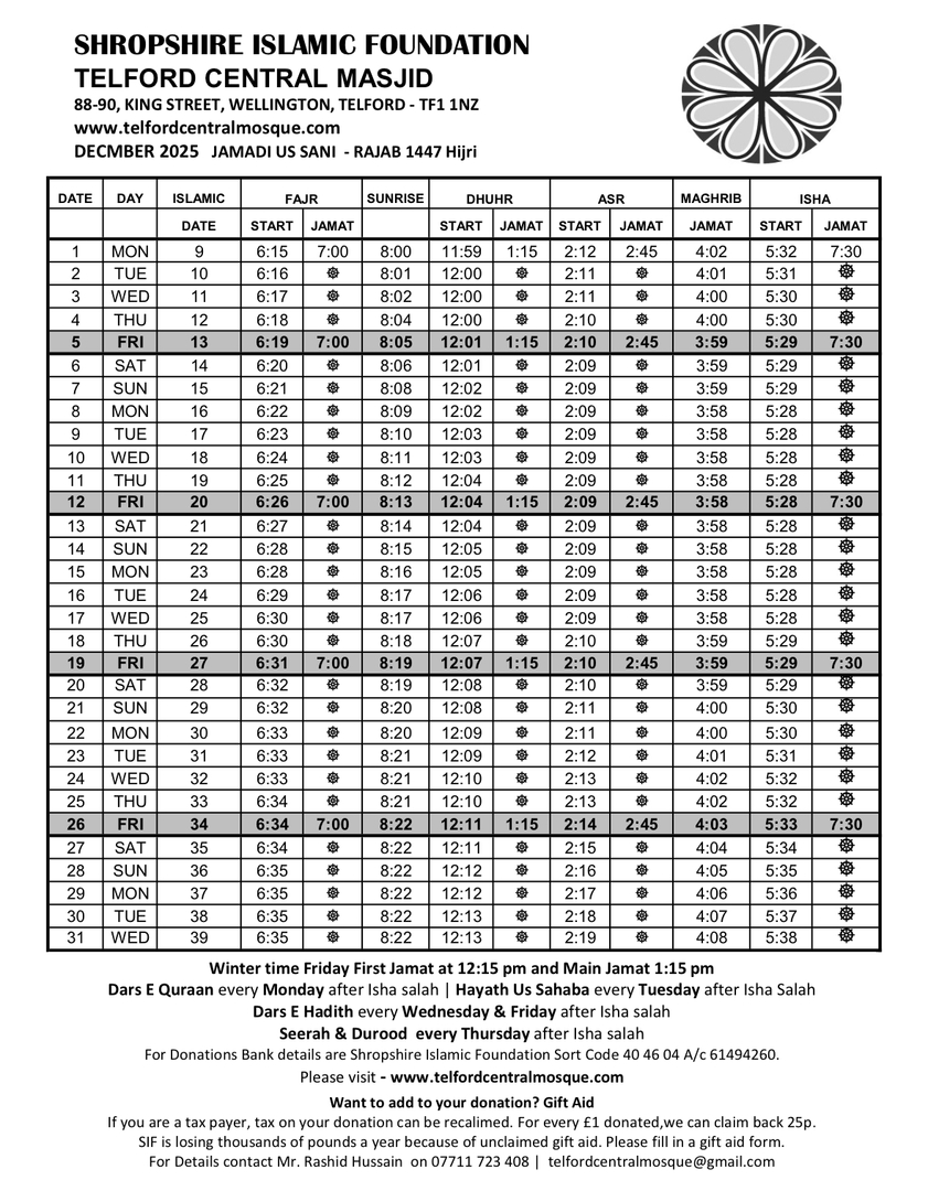 * Please ensure you have parked RESPONSIBLY * Place shoes on the racks provided ONLY * Keep phone on SILENT inside the masjid * JazakAllah Khayran